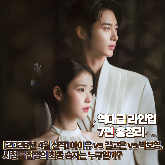 혹시 다가오는 2026년 4월, 우리들의 수면 시간을 빼앗아 갈 역대급 방송가 라인업을 확인하셨나요? 캐스팅 기사가 뜰 때마다 "이게 진짜 한 달에 다 나온다고?"라며 제 눈을 의심했을 정도입니다. 아이유, 김고은, 고윤정, 안효섭, 박보영까지... 연말 시상식을 방불케 하는 톱스타들이 각기 다른 장르로 안방극장과 OTT의 문을 두드립니다.